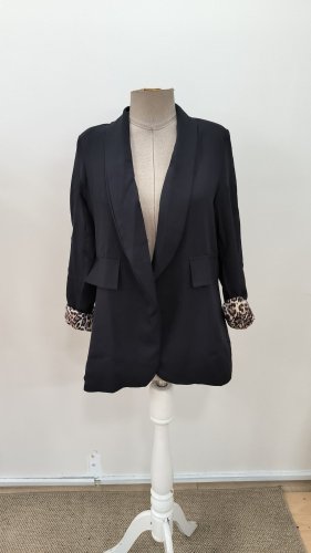 • Kadın uzun kollu yakalı önü açık leopar desen detaylı astarlı atlas ceket